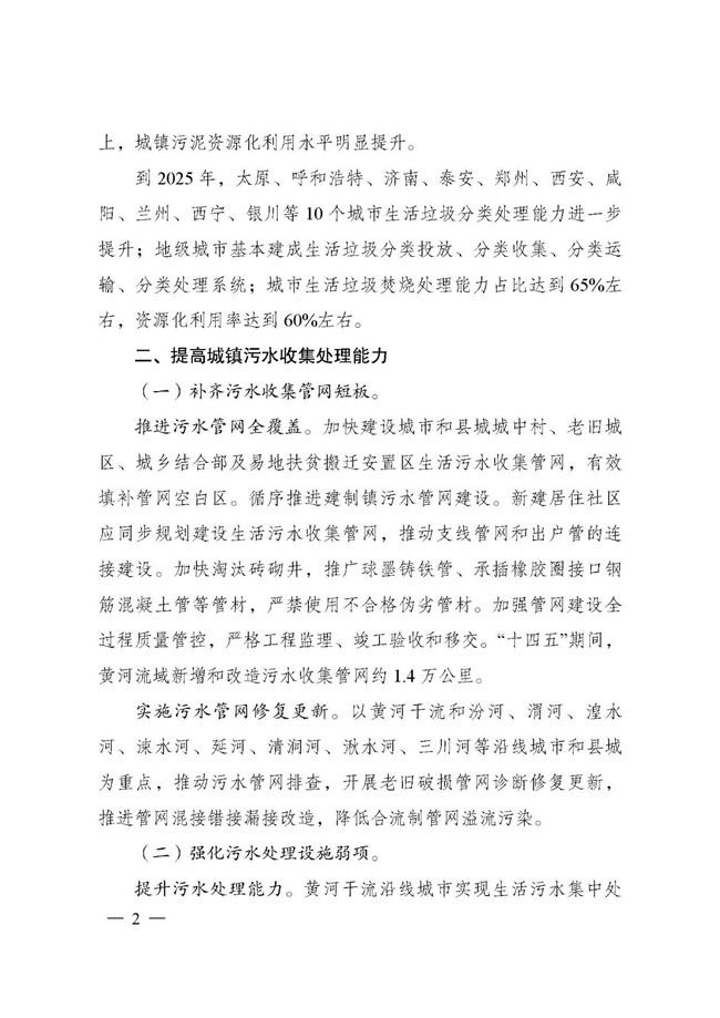 附件:《十四五”黃河流域城鎮(zhèn)污水垃圾處理實施方案》